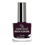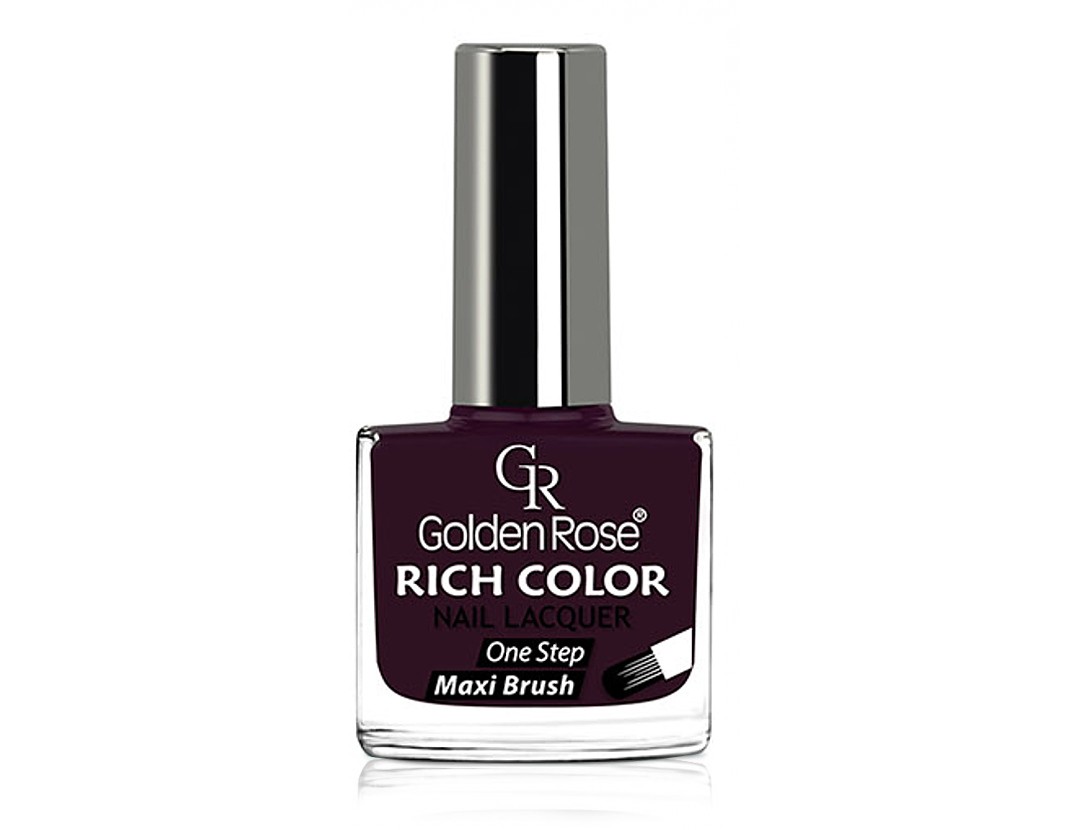 Nowoczesna i aktywna kobieta Golden Rose wybiera manicure nude (idealne będą cieliste odcienie pudrowego różu) albo – jak modelka na zdjęciu – lakier o barwie soczystej jagody albo śliwki. Wciąż modne są też paznokcie ozdobione u nasady półksiężycami w innym, intensywnym kolorze (tzw. moon nails).