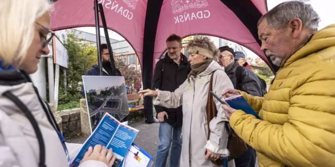 Jakub Panasewicz z Dyrekcji Rozbudowy Miasta Gdańska, cierpliwie wyjaśnia przechodniom na Zaspie, że po 50 latach intensywnego użytkowania kładka nad skrzyżowaniem al. Jana Pawła II i al. Rzeczypospolitej ustępuje miejsca nowoczesnym i bezpiecznym rozwiązaniom. Zamiast jednej wysokiej kładki powstanie pięć mniejszych przejść z sygnalizacją świetlną, zintegrowanych z przystankami tramwajowymi i drogami rowerowymi.