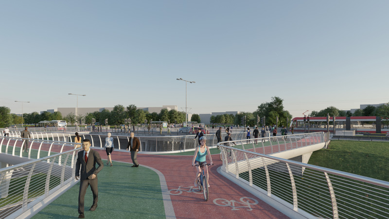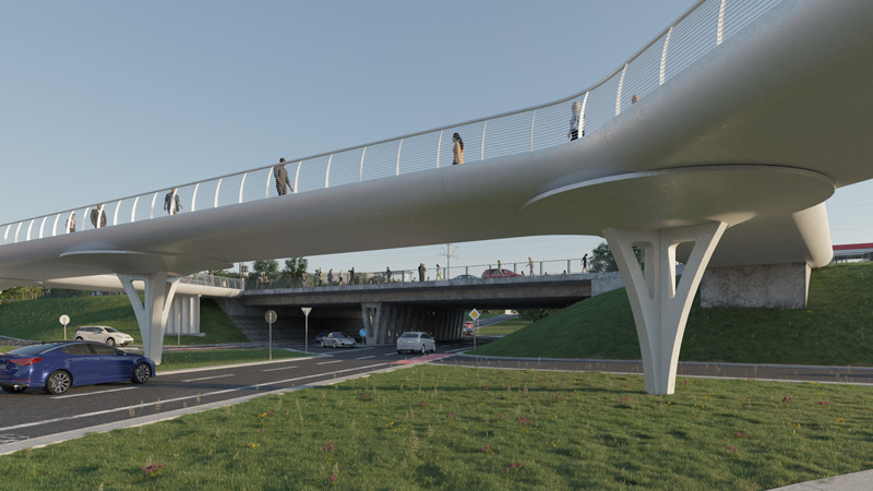 W miejscu obecnej kładki nad al. Jana Pawła II powstanie system pięciu nowoczesnych przepraw, które umożliwią bezpieczne i wygodne przejście przez aleję, bez barier architektonicznych. Nowe obiekty będą dostępne dla pieszych, rowerzystów oraz osób z ograniczoną mobilnością.