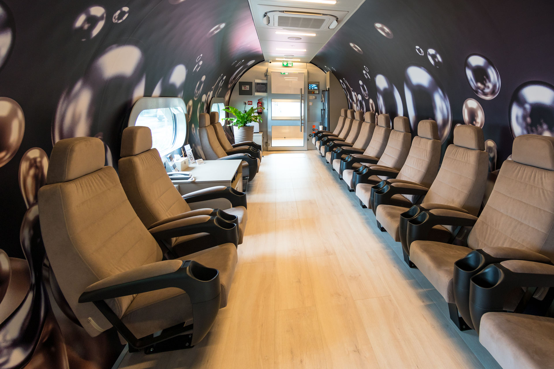 Po okresie kompresji weszliśmy do komory, gdzie usadowiliśmy się w wygodnych fotelach. Jest ona dużo wyższa i szersza, niż nam się wydawała z zewnątrz. Jest w niej nawet toaleta o standardowym rozmiarze.