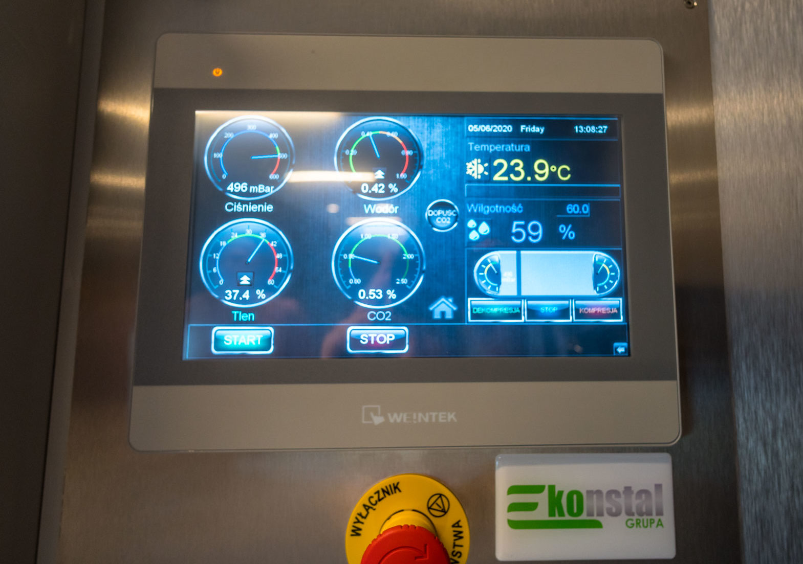 Na miejscu w recepcji czekała na nas Pani Julia Jędrych – pomysłodawczyni i założycielka Normobaric Clinic. Po zapoznaniu się z zasadami korzystania i listą przeciwwskazań np. choroby uszu, aktualnie trwające infekcje układu oddechowego i zatok, choroby zakaźne, ciąża, gorączka, wszczepiony rozrusznik serca, udaliśmy się do pierwszej komory, tzw. śluzy.